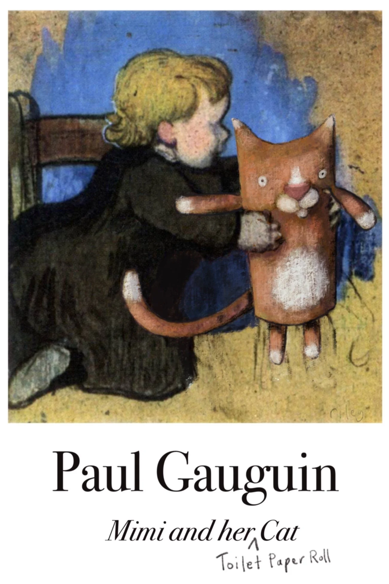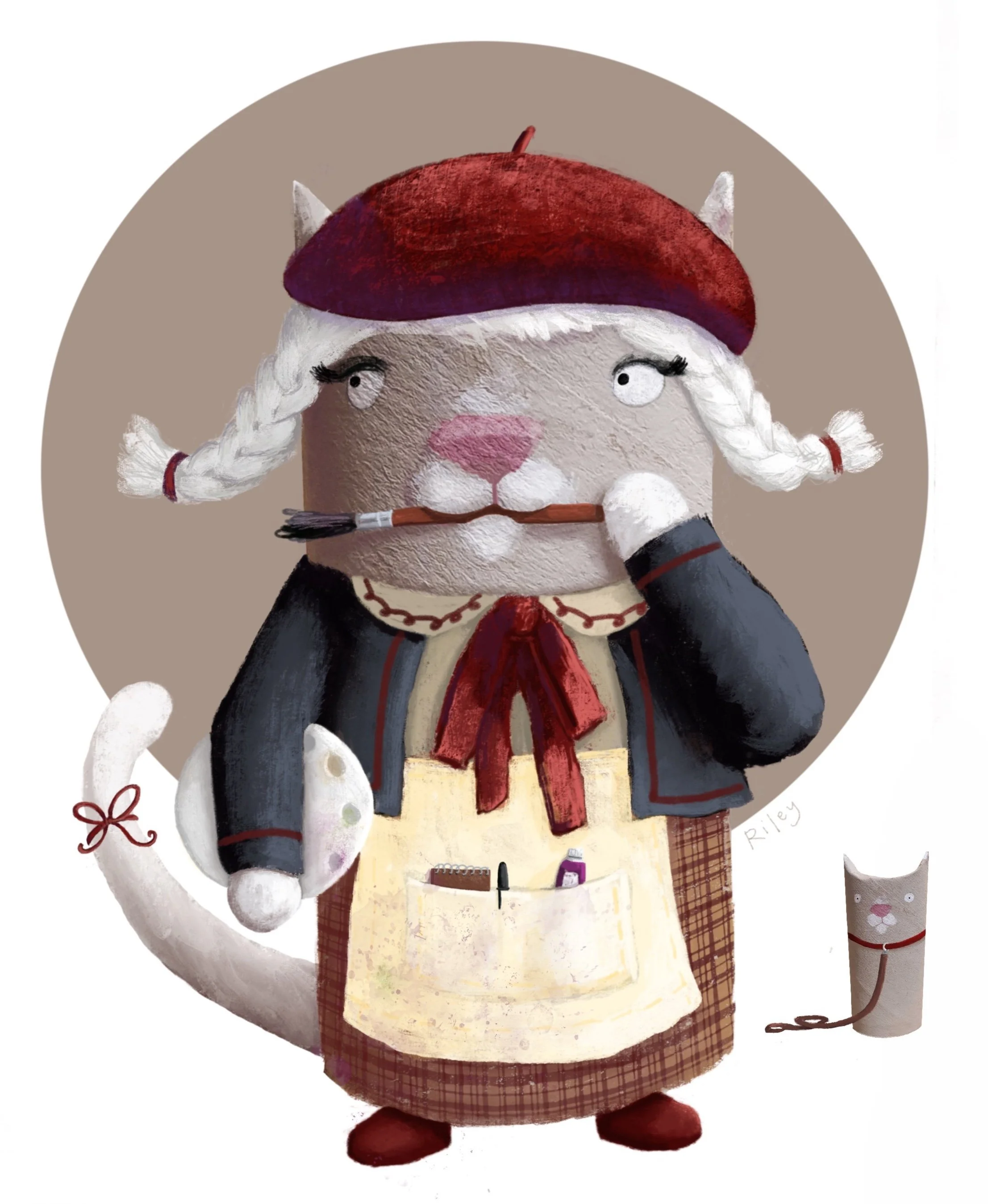 This toilet paper roll kitty artiste was inspired by an instagram #dtiys started by @sarahlisahleb. The wee cat in the corner is what she looks like IRL, painted loosely with gouache, and the rest was done using Procreate.