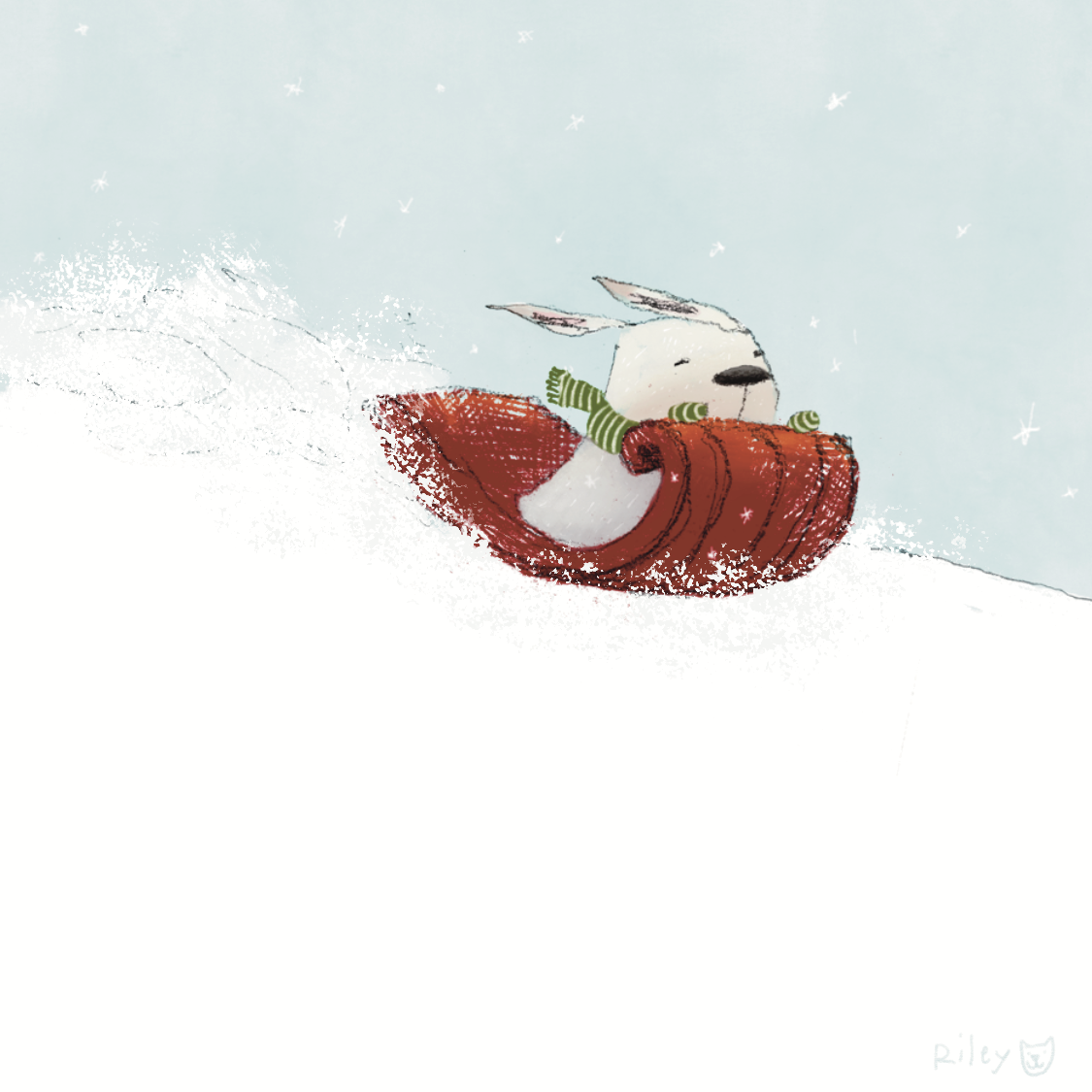 This happy little snow hare was made with graphite and Procreate.